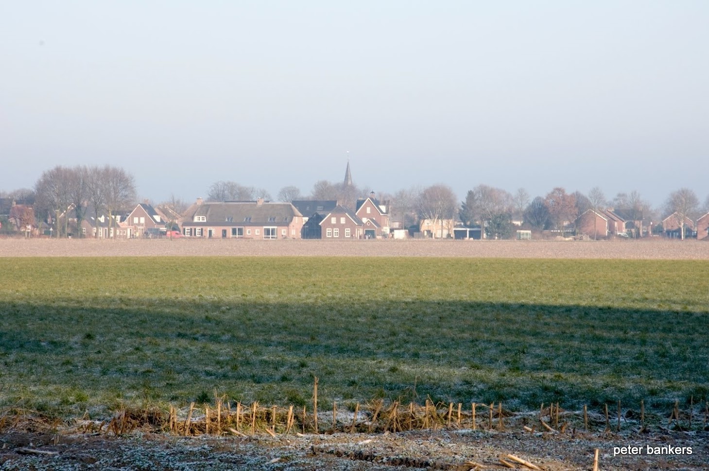 Op mijn fototochten sprak ik ‘ns ’n man in Milheeze op de Hoevense Klamp *, waar hij z’ n hond uitliet.” Toen we ’n tijdje midden op de weg hadden staan praten zei hij: “Zie je mijn hond daar ? Hij is gek! Hij kan nooit in dezelfde ruimte zijn als ik. Als ik hier ben loopt hij daar. Kijk maar: wij staan nu hier midden op de verharde weg, maar hij loopt nu daar in ’t veld. En, als ik bij hem ga staan …. nou, kijk maar ‘ns wat er gebeurt … ” Hij liep naar de hond en ging er bij staan. Zonder blikken of blozen begaf de hond zich naar de andere kant van de weg. ” Zie je wel !” Zei de man, en hij wees naar zijn hond, die nu aan de andere kant van de weg liep in het veld. “Als ik hier ben is hij daar. Is dat niet gek ?” Ik stond ervan te kijken. Dit inzicht in de dierlijke psychiatrie was geheel nieuw voor me, en ik vroeg me af welk beroep hij uitoefende, dat hij me dit kon vertellen.. Maar toen ik hem die vraag wilde stellen – of hij wellicht in ’n inrichting werkte – had hij zich al gekeerd en liepen ze “samen” al weer naar huis. Ieder zo in z’n eigen baan. Zou het handboek van de psychiatrie dan misschien samen te vatten zijn in zo’n simpel tafereel dacht ik.